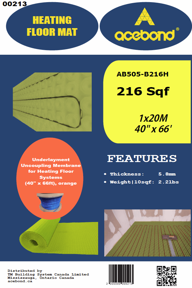 AB505-B216H WATERPROOF-HEATED UNDERLAY-ROLL-216-SQF