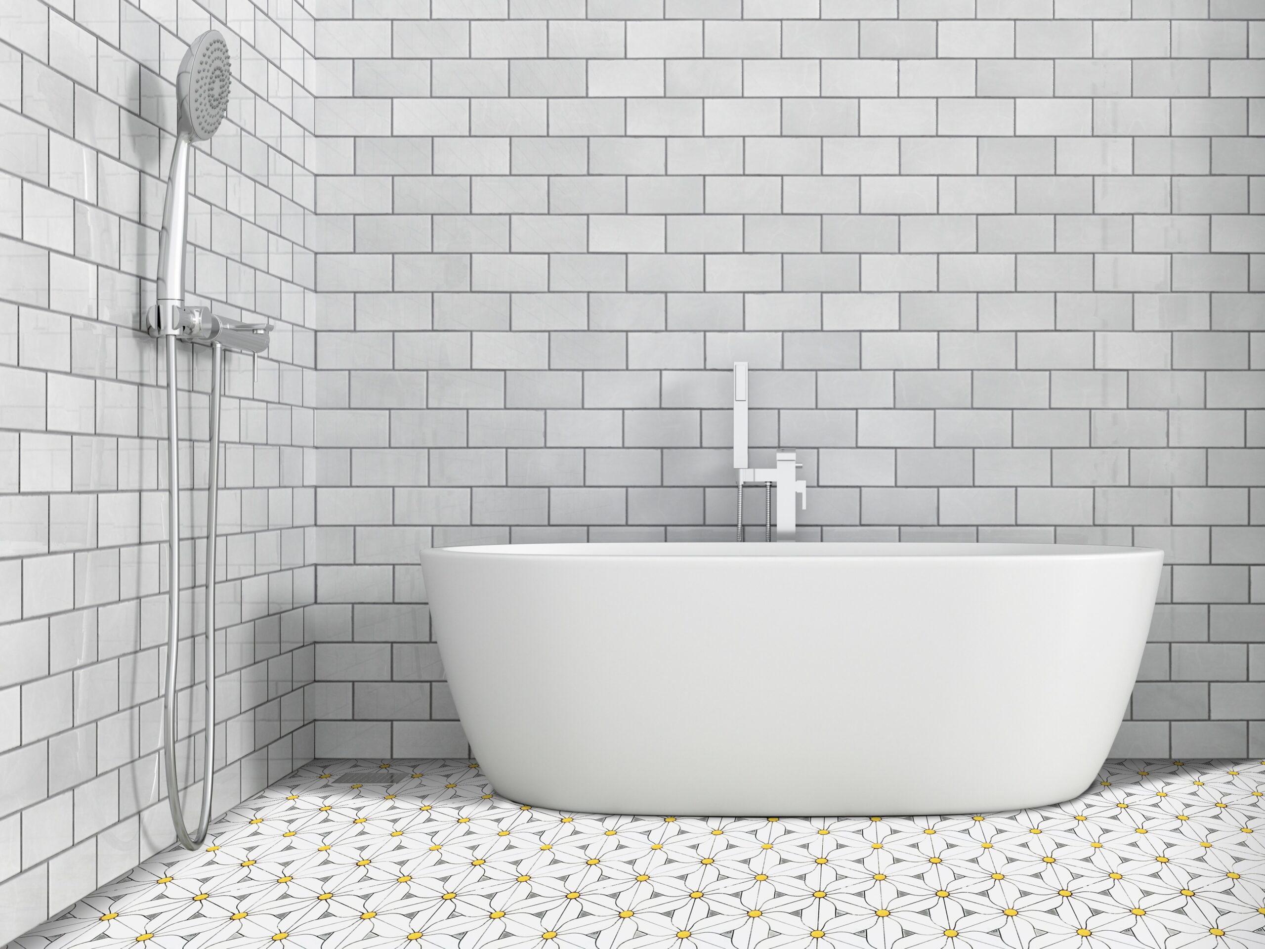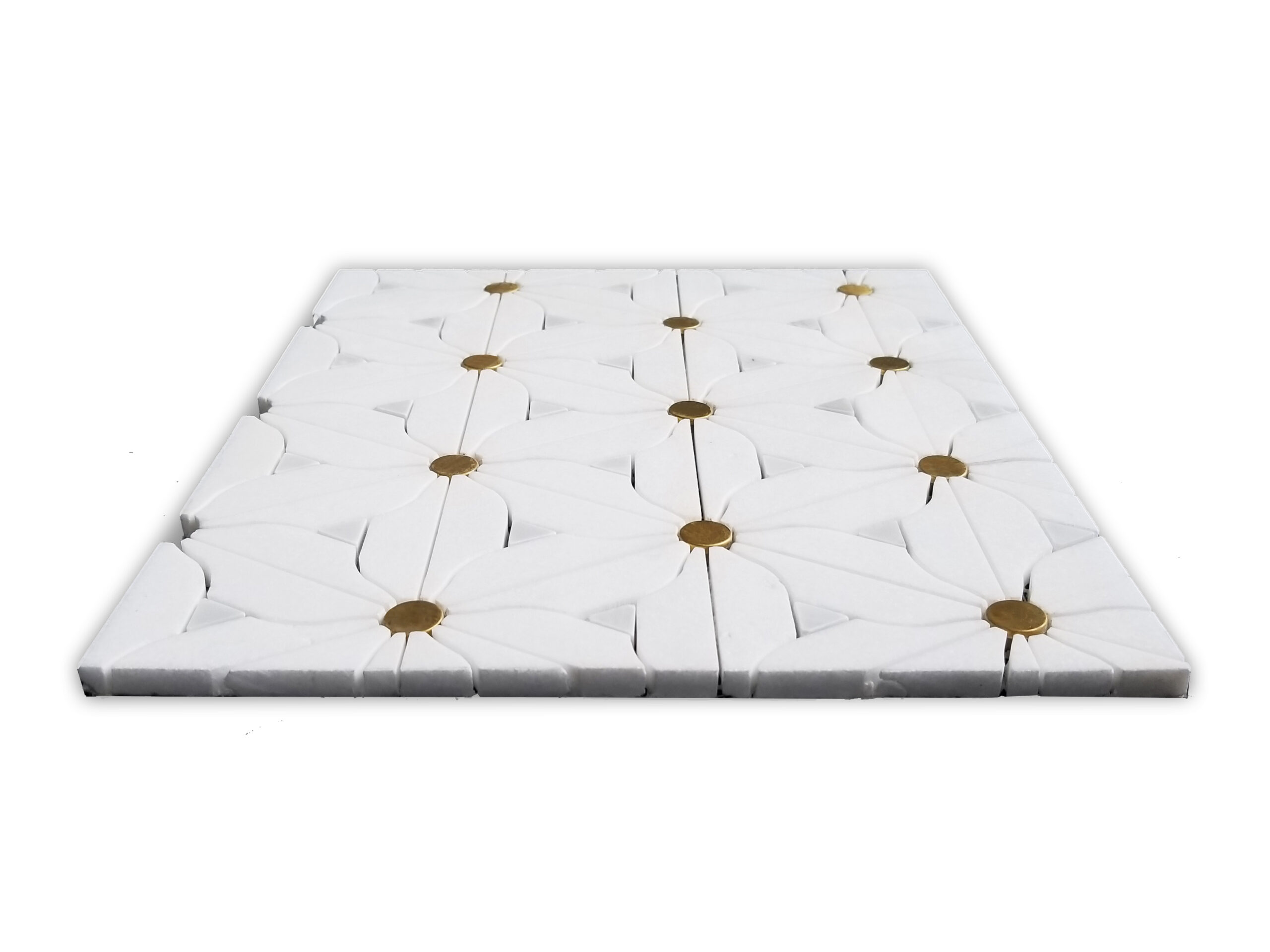 The Golden Flower is a beautiful mosaic certain to make every room feel more like home. Cut using a state of the art water jet system; the cheerful flower shapes are uniquely designed to be easy to interlock with one another without breaking a sweat. The combination of premium white marble and brass metal is sure to look clean and stylish for years to come.